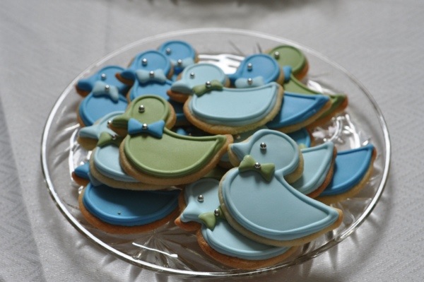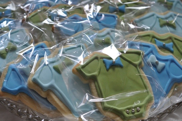 I made 24 Bow tie Onesie Sugar cookies and sealed them so that each guest could take one home. The duckies were placed on trays to eat at the shower. Everyone commented on how yummy the cookies were and that usually decorated cookies don’t always taste delicious.
