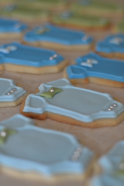 - I use Wilton food colors at Michael’s the colors I used were Royal Blue, Leaf Green, and Sky Blue (the colors are a little off in the pictures as the flash changed them a bit) The cookie cutters I purchased on Ebay from www.stores.ebay.com/Foose-Cookie-Cutters/Baby