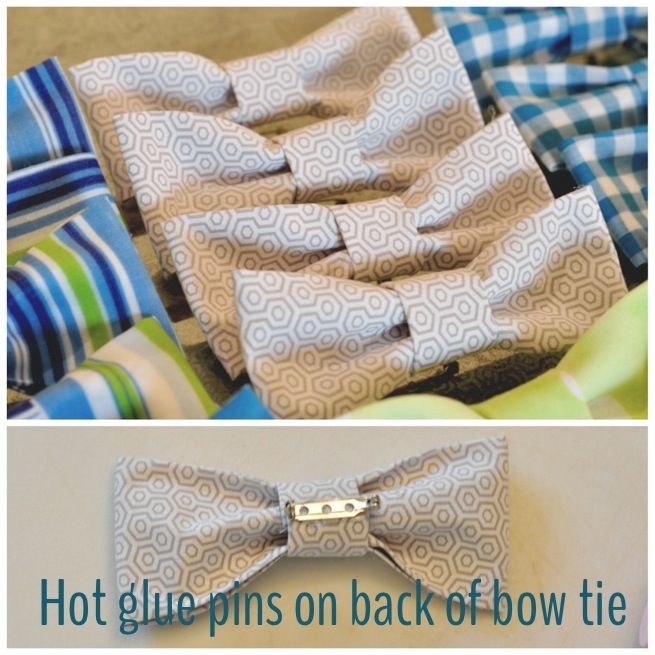Hot glue the bar pin to the back of the bow tie. Let cool. Your finished.