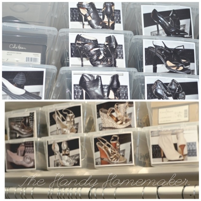 11. I place the original shoe box into the container until I get a chance to take a picture of any new purchases.  That way I can still see what shoe is in the container by the illustration on the box.