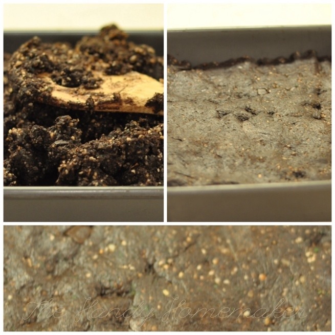 5. Press into the pan using the back of a spoon, smooth the mixture flat.
