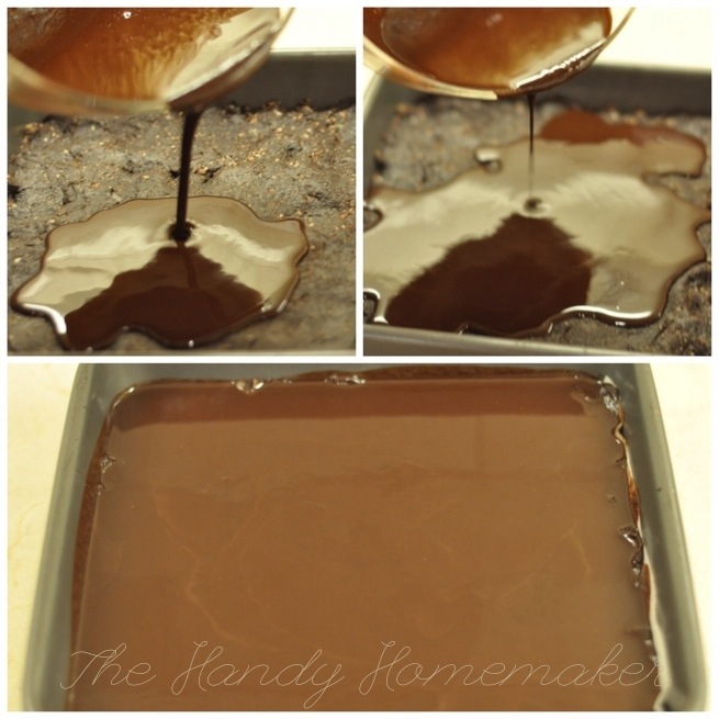 3. Remove from heat and pour over the brownies. Place back in refrigerator until glaze is set.