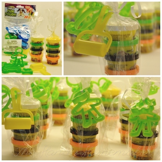 A special “Thank You” to Abby for packaging all the little tubs of Play-doh for me. One of each color placed in a small clear treat bag tied off with a twist tie or curling ribbon.
