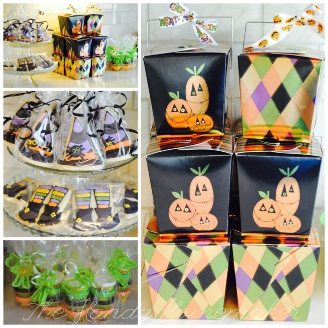 I found mini dough cutters at Target for only a dollar a package and tied two on with curling ribbon. These would be perfect for a children’s Halloween party favour.