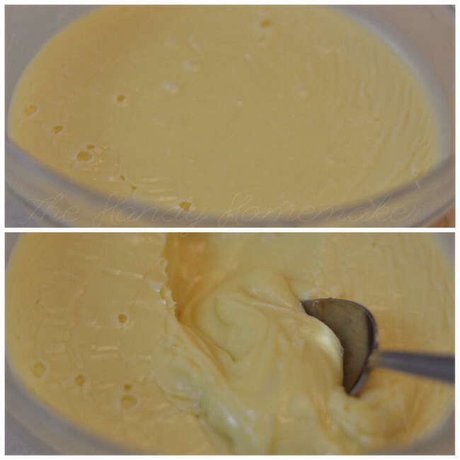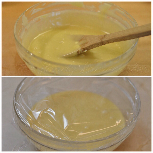 • Place a bowl over a sauce pan that has 2-3 inches of water on the bottom or use a double boiler.  I prefer the bowl method