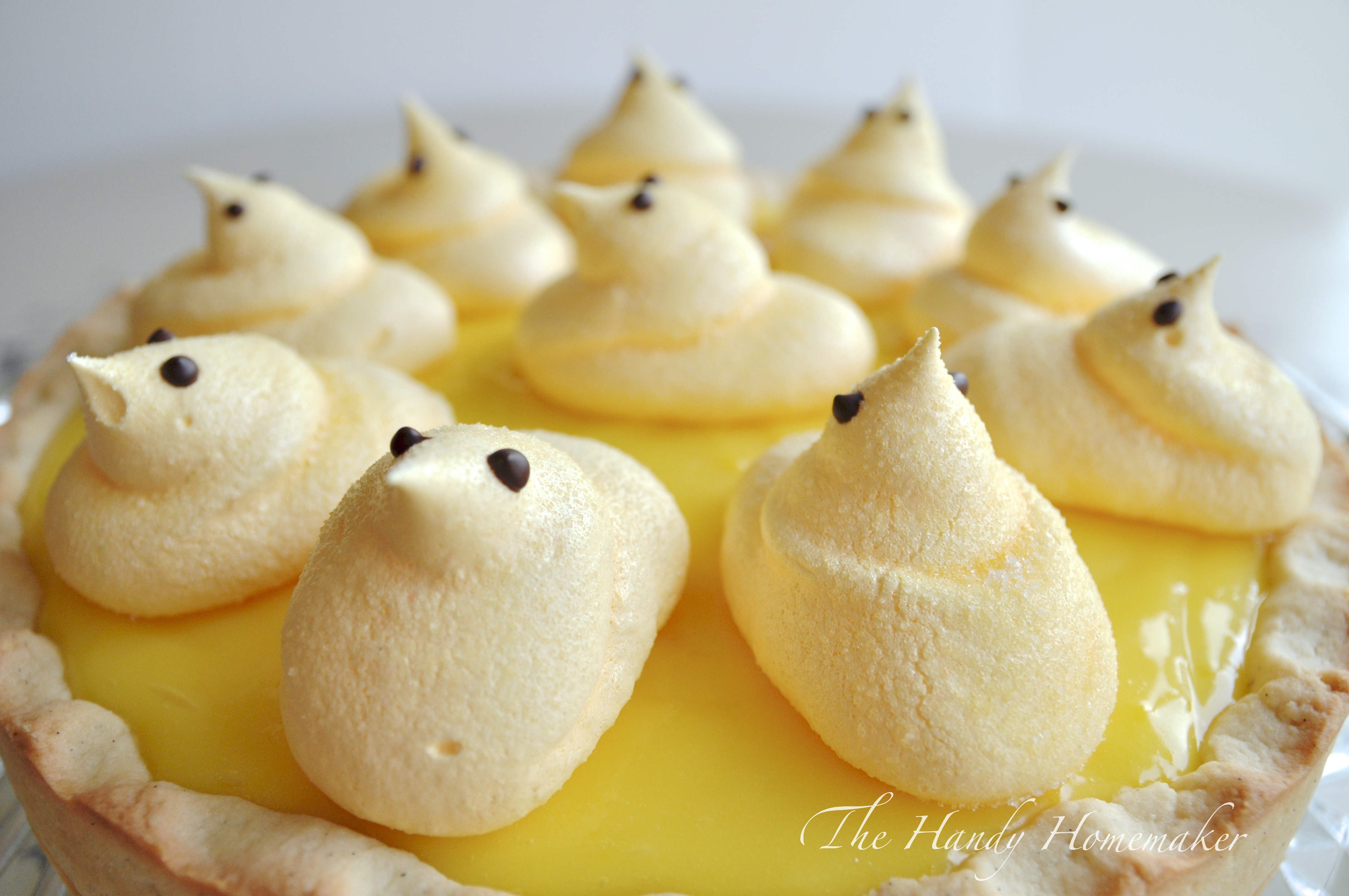 This tart is a little more work than making a lemon pie or tart, but in my opinion it is worth every minute. The velvety smooth center is rich, sweet and tart. What makes this tart stand out is that unlike a lemon pie this center remains creamy in texture. The crust is strong and holds each bite firmly yet when it reaches your mouth it is light and almost melts in your mouth. All things that a great dessert should do. This Creamy Lemon tart is amazing on its own or served with a meringue topping. For Easter I thought it would be fun to make these Meringue clouds into “peep” shapes and serve on top. Another option once center is chilled is to top with fluffy meringue and lightly toast. This recipe can be made easily into a lime tart by replacing the lemons with lime zest and lime juice.