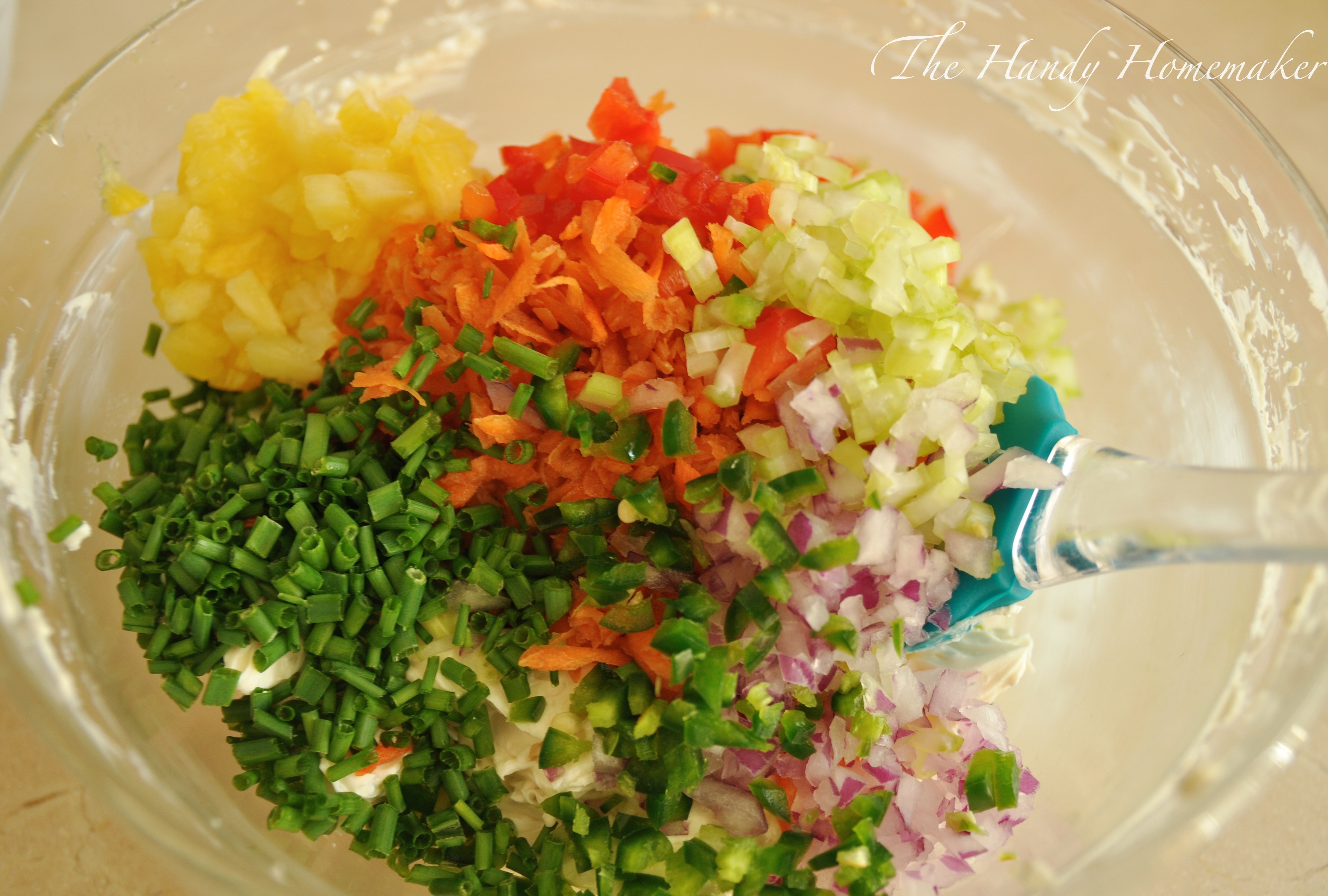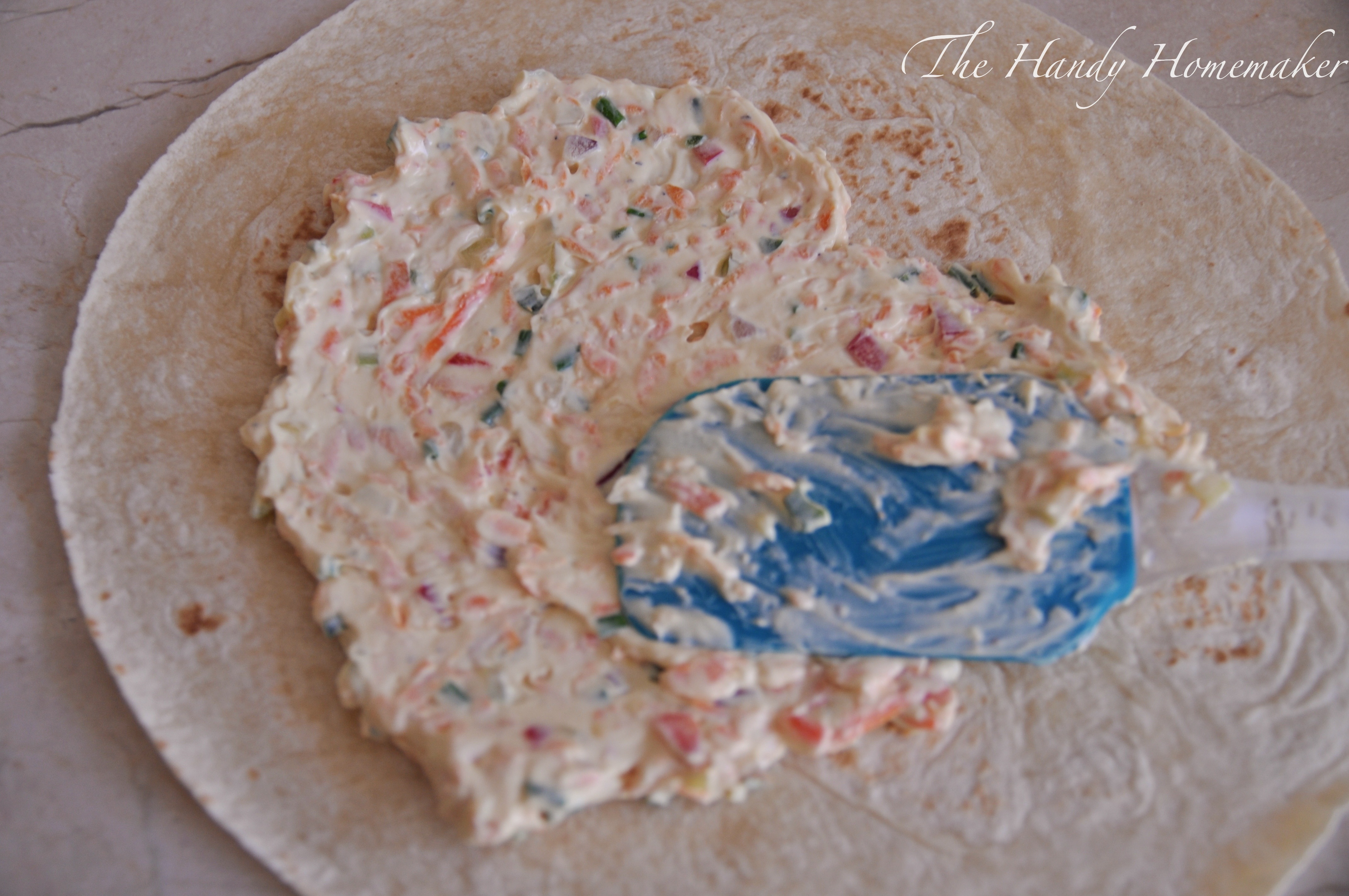 9. Stir until combined. (At this point this mixture can be covered and refrigerated overnight until you are ready to spread into the wraps)
