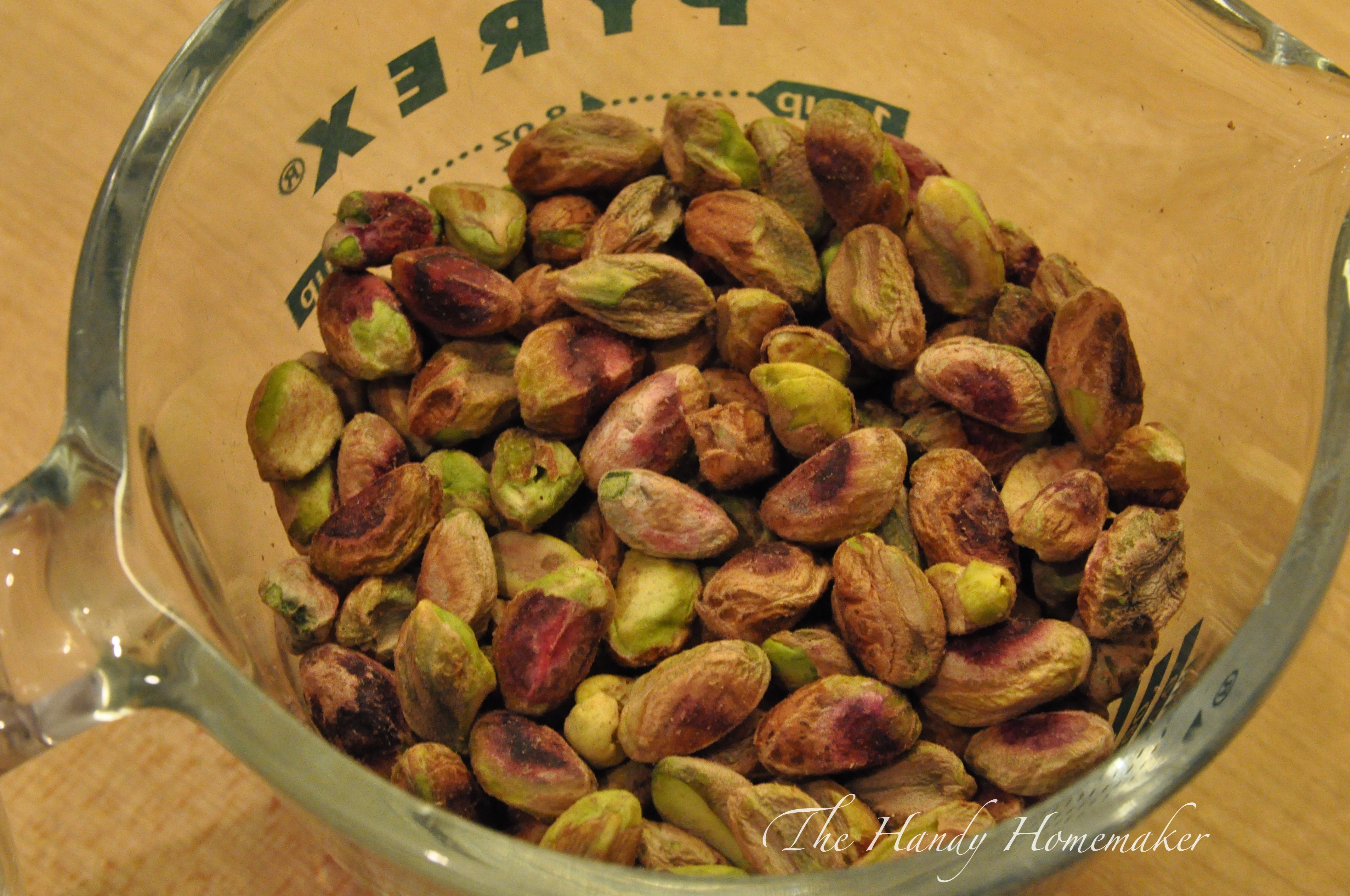 - 1 cup pistachios (will measure just over 1/2 of a cup once finely minced/chopped to a small crumb texture)