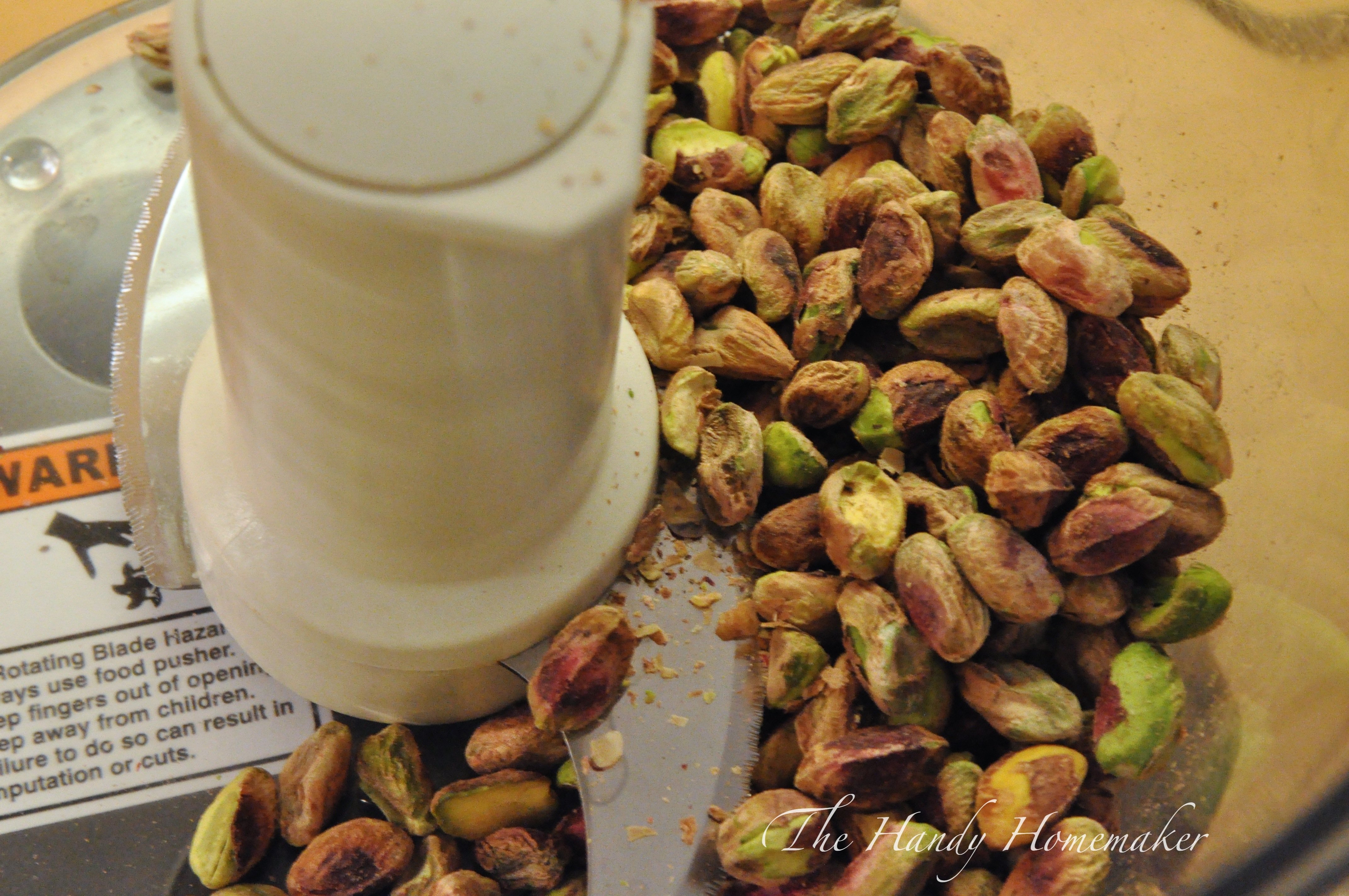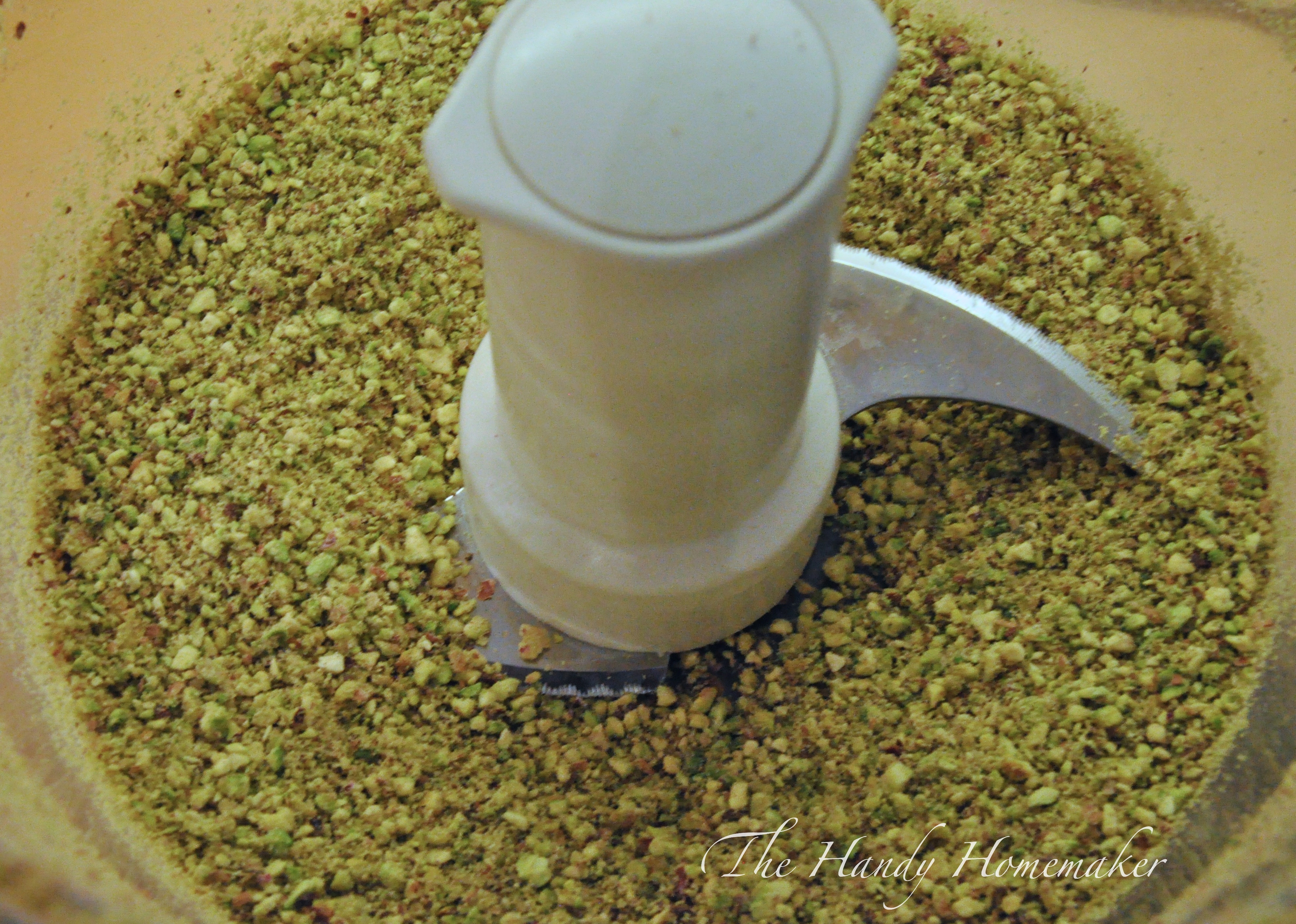 Add the pistachios to the food processor, cover and start pulsing for 15-20 seconds