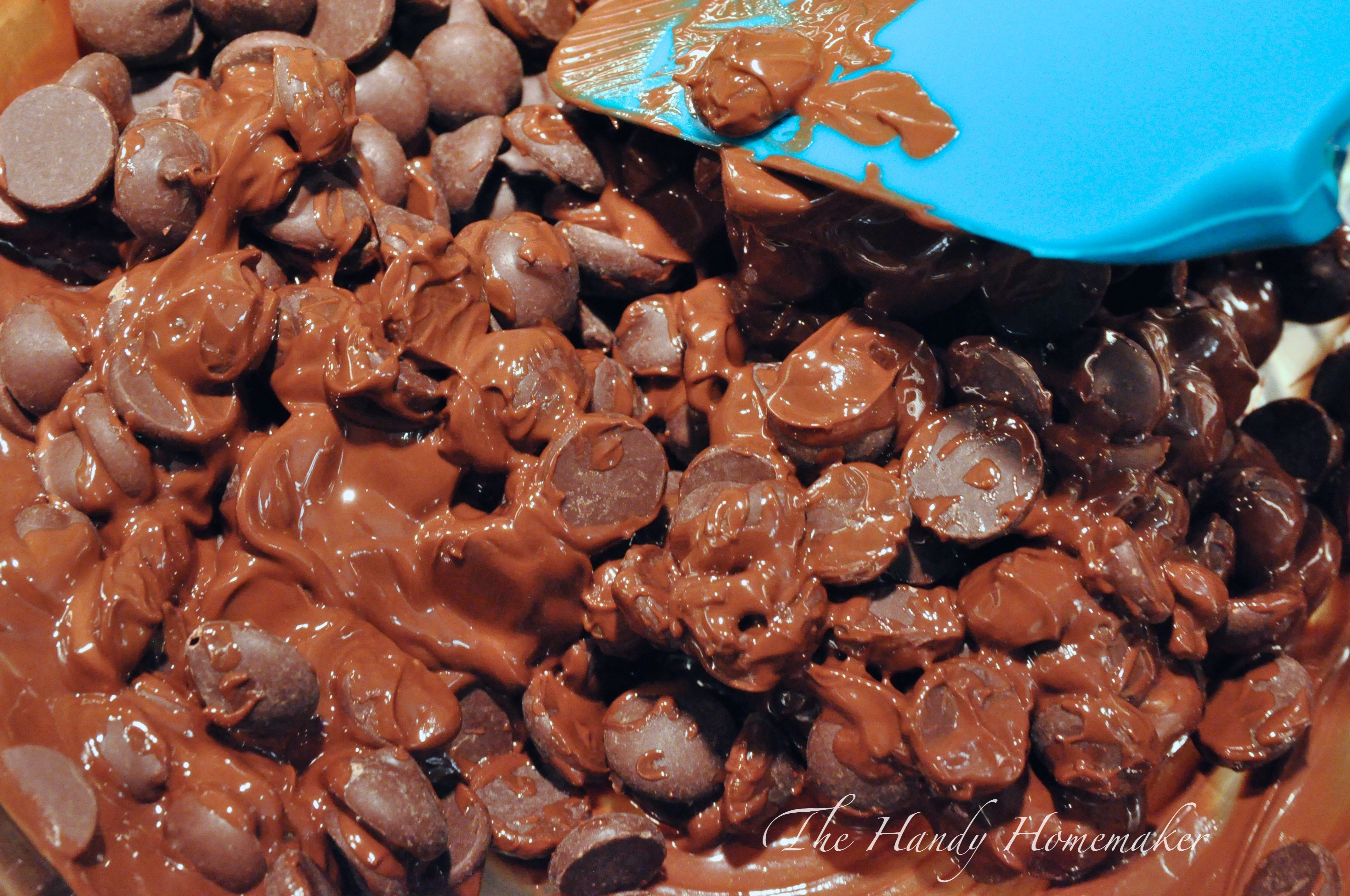 Melt over medium heat until completely melted. Let sit over the warm water but off the burner until ready to use.