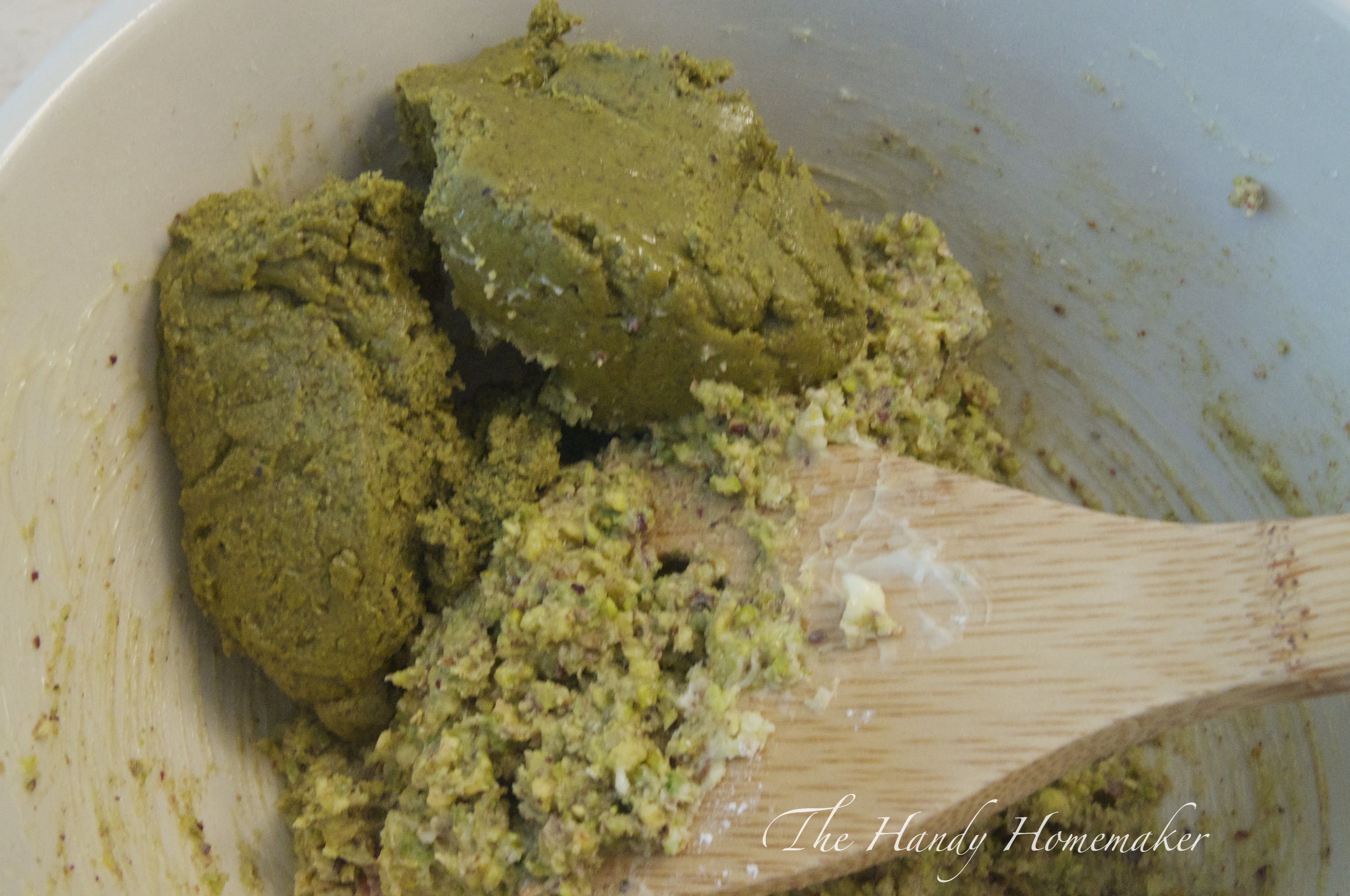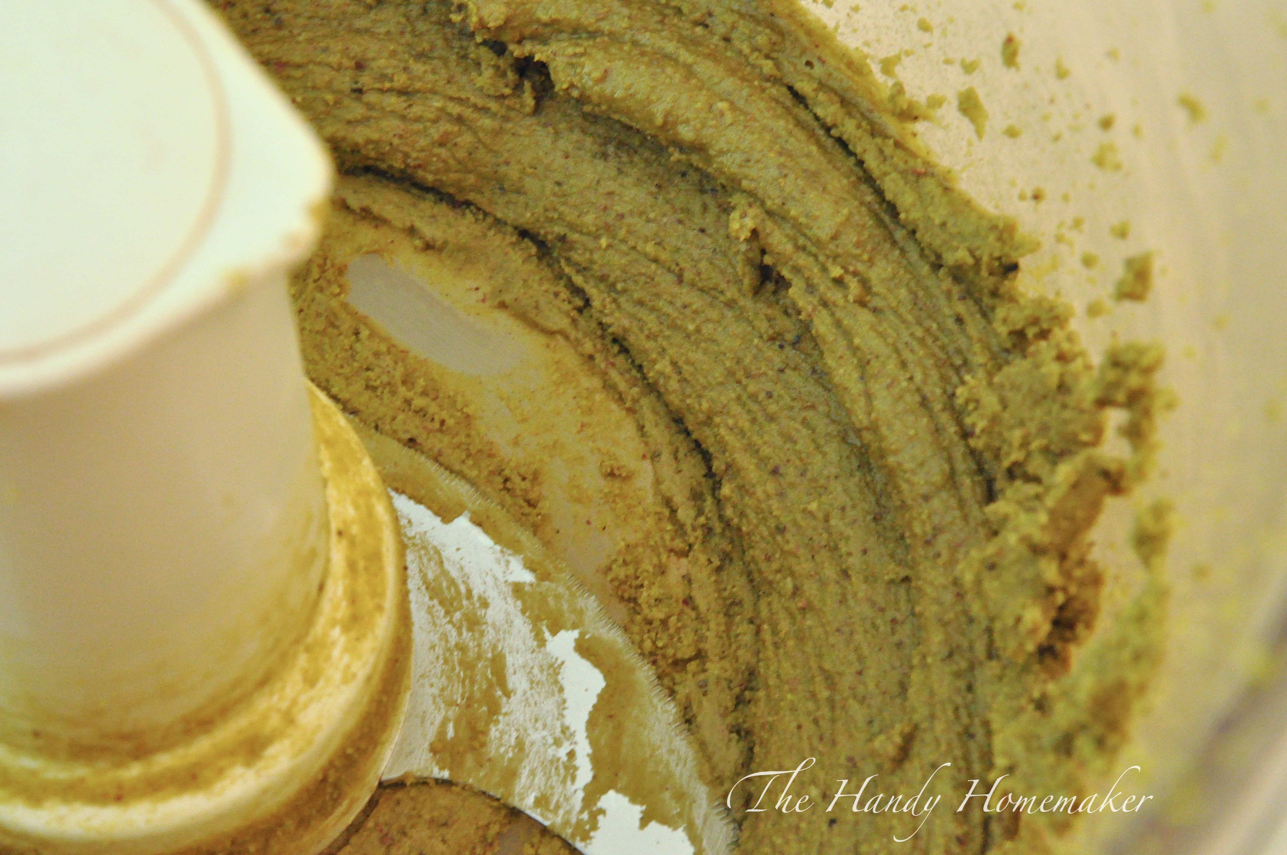 It doesn’t need to be completely smooth, just puree long enough to make a paste and release the oils from the pistachios set aside.