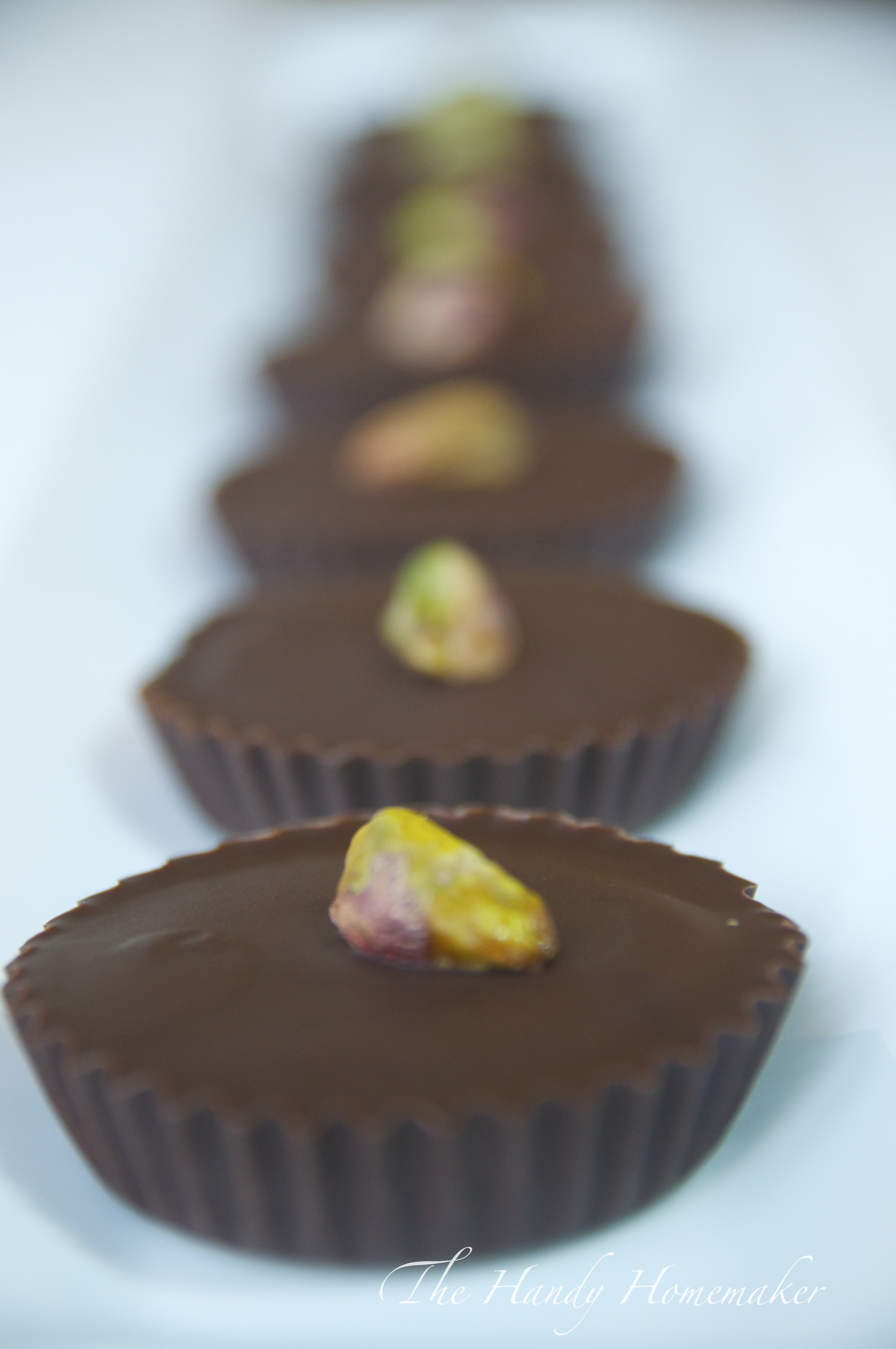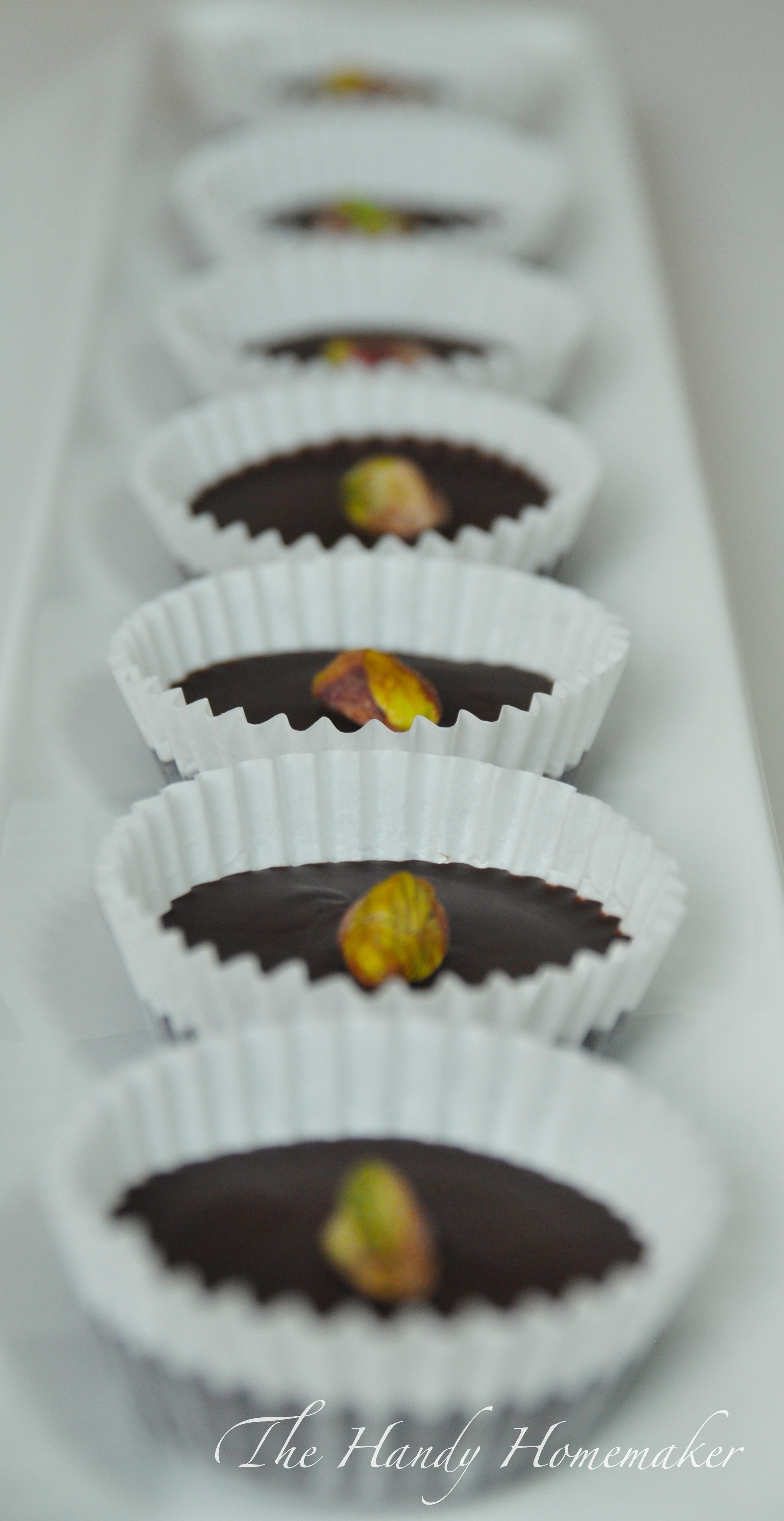 If you love pistachio’s you will love these. The recipe is my recipe for for peanut butter cups with a few tweaks. If you want to make peanut butter cups, leave out the almond extract and substitute the pistachio’s with finely ground peanuts, peanut butter or just peanut butter for a smooth and creamy Peanut Butter cup. I like a little crunch in my PB cups which is why I add the peanut crumbs.