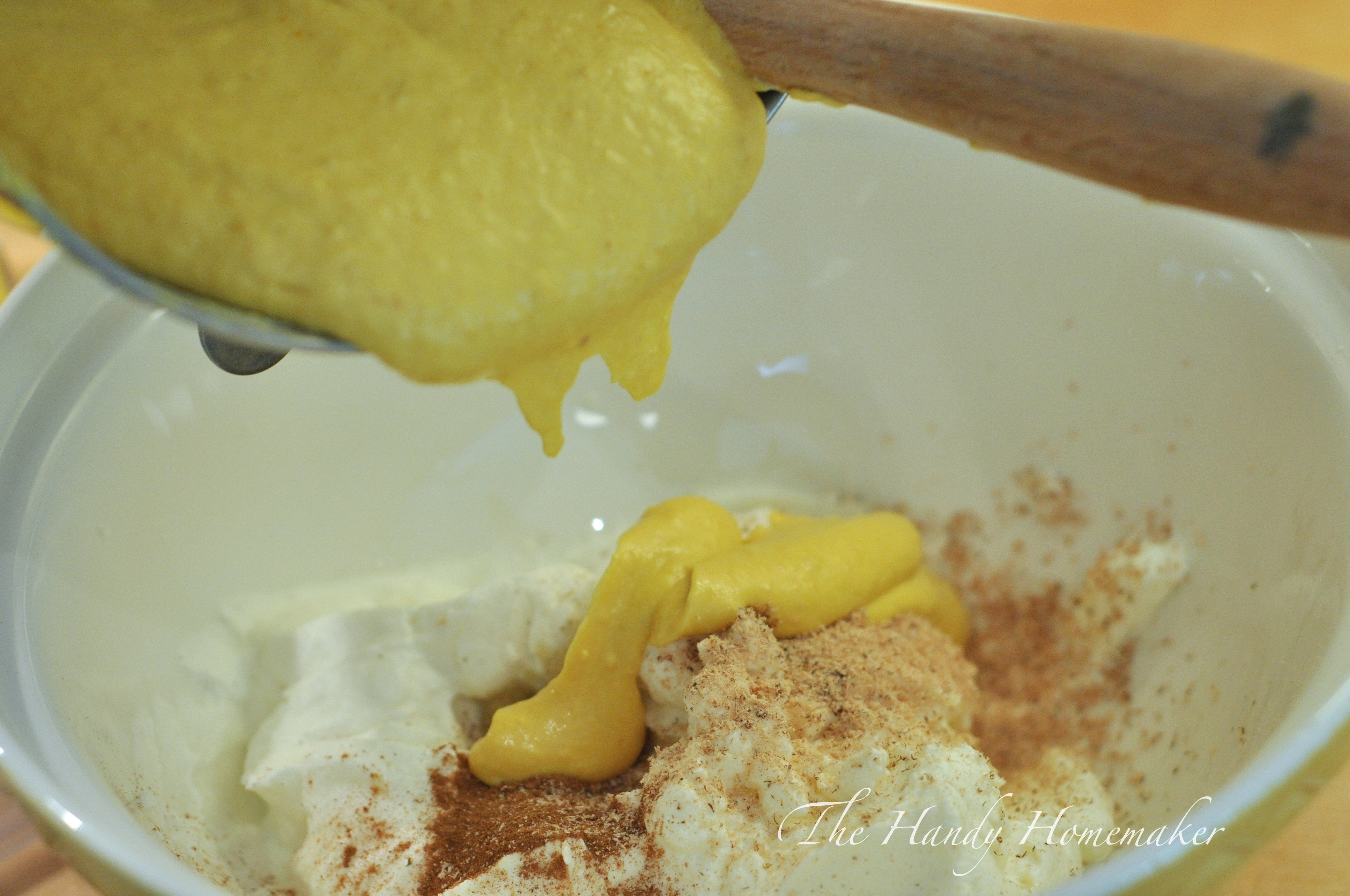 DSC_4440Add sweetener and the whisk attachment and whisk together until creamy and blendedDSC_4442Divide the whip cream into two bowls.  One large mixing bowl and one small mixing bowl, set aside  DSC_4446No need to wash, just add the slightly softened cashew cream cheese and silken tofu to the stand mixer bowl the whipped cream was in.  Whisk on high until smooth.DSC_4454You may use your own Pumpkin puree or store-bought pumpkin pureeDSC_4456Add the puree to the smooth cashew cream and whip to combineDSC_4458Scrape the side and bottom of the bowl with a spatula to make sure it is evenly combined.  DSC_4459Add the sugar or sweetener of your choice whisk until the sugar is combined and the mixture is smooth and lump free