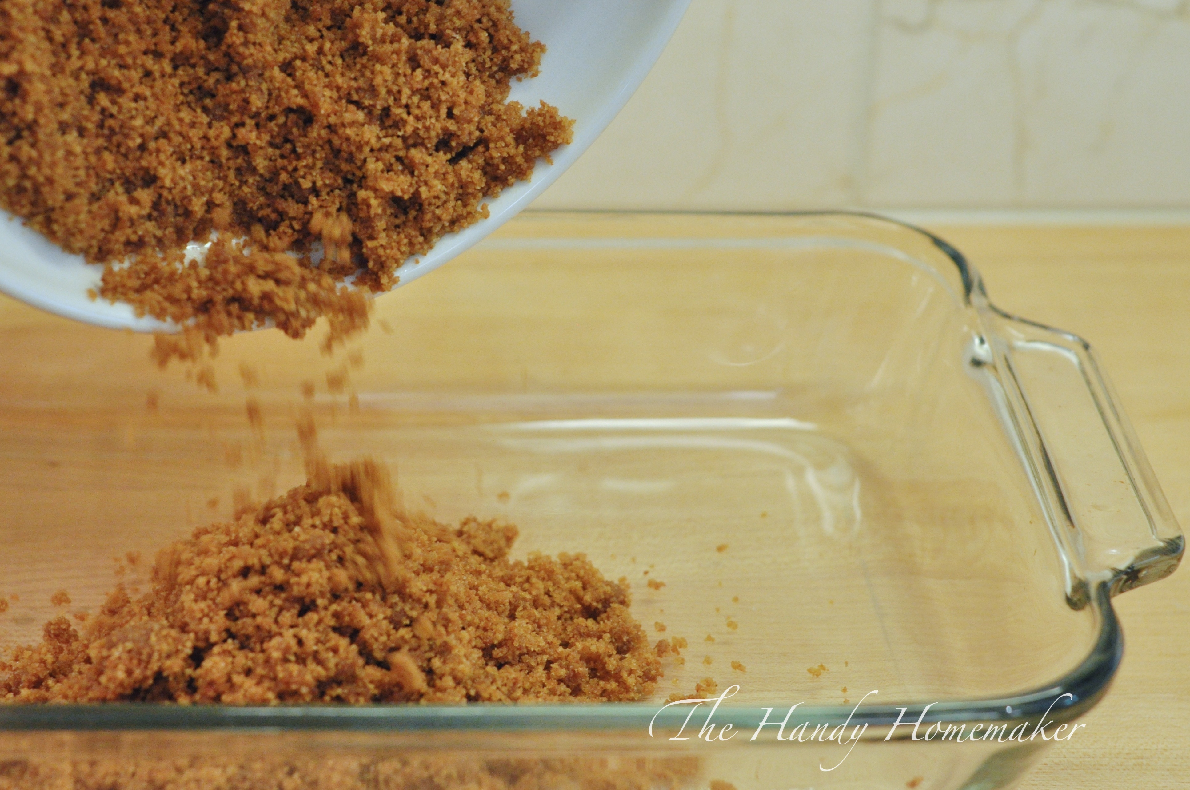 DSC_4475Weigh or measure the graham cracker crumbs, or graham crackers or cookies that you ground up in a blender or food processor and place in a small bowl
