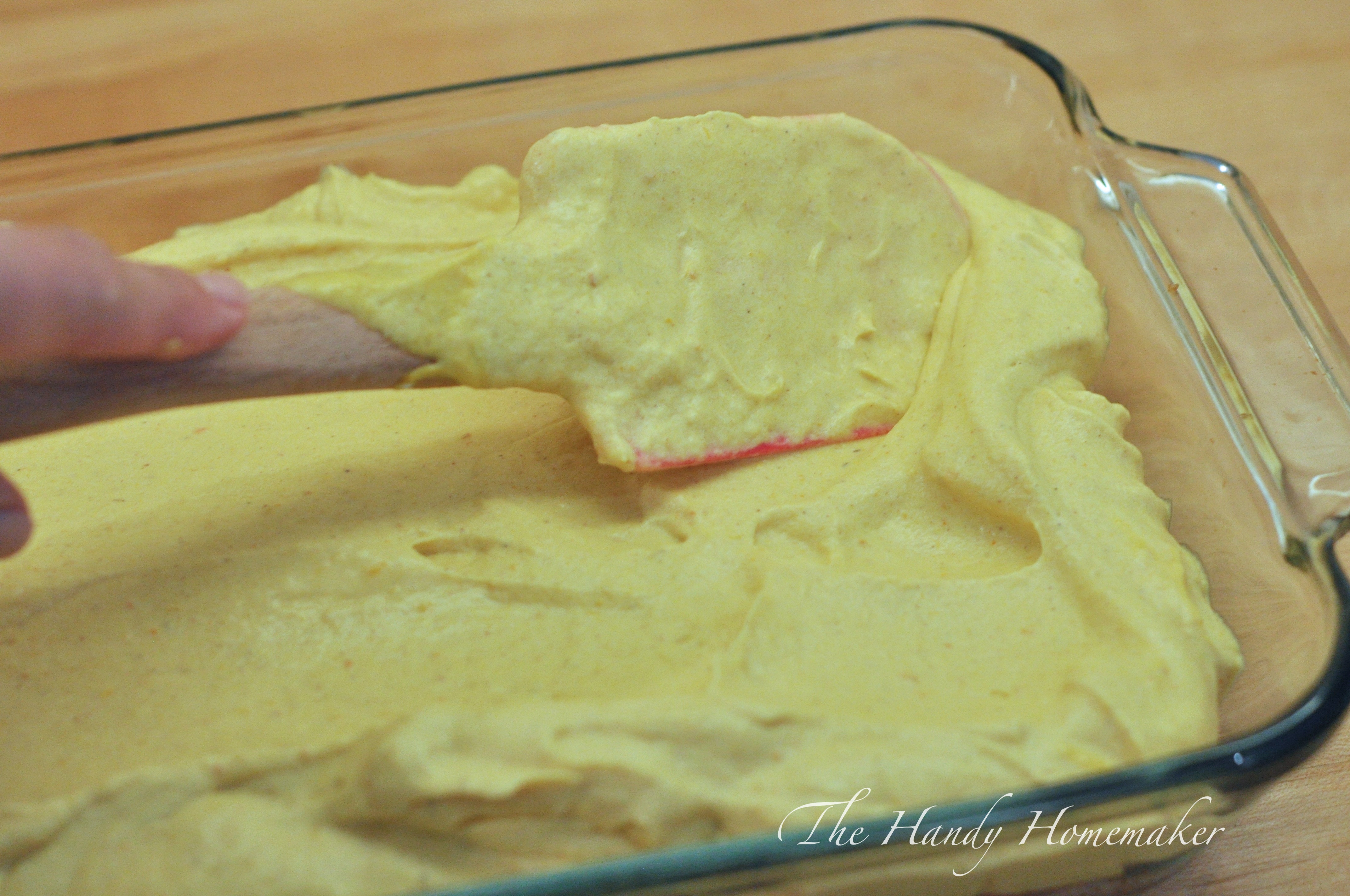 DSC_4483Add the crumb mix to the bottom of a 9×13 dishDSC_4485Gently press the crumb mix until evenly distributed in the dish.  Don’t tamp too hard.  You don’t want a rock solid baseDSC_4494Pour the Cheesecake mix over the crumb baseDSC_4495Gently spread the Cheesecake filling until even DSC_4498Either spread the whipped cream over the fluffy cheesecake, cover with plastic wrap, and refrigerate or cover both, refrigerate until time to serve scoop cheesecake into a serving bowl, and top with a dollop of whip cream